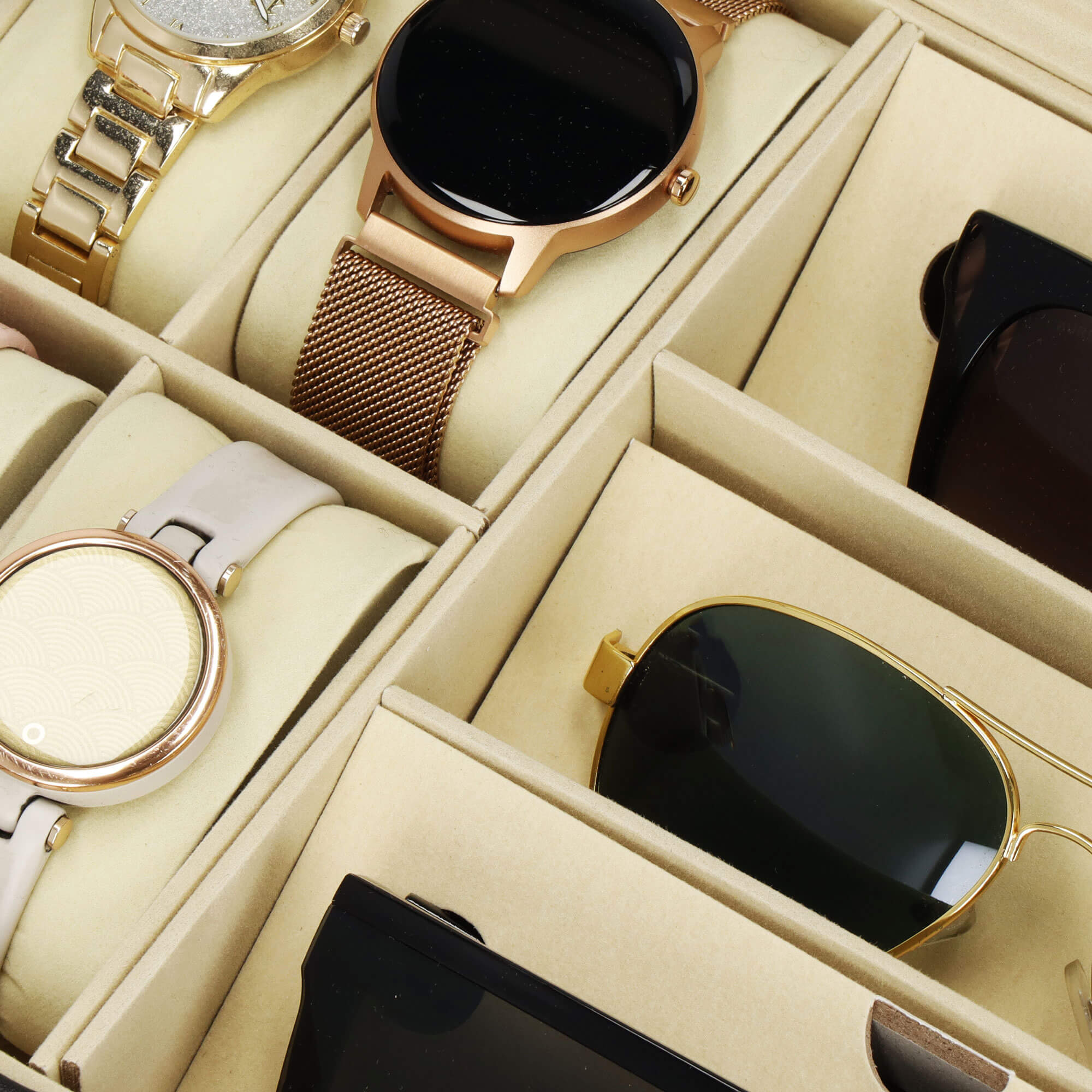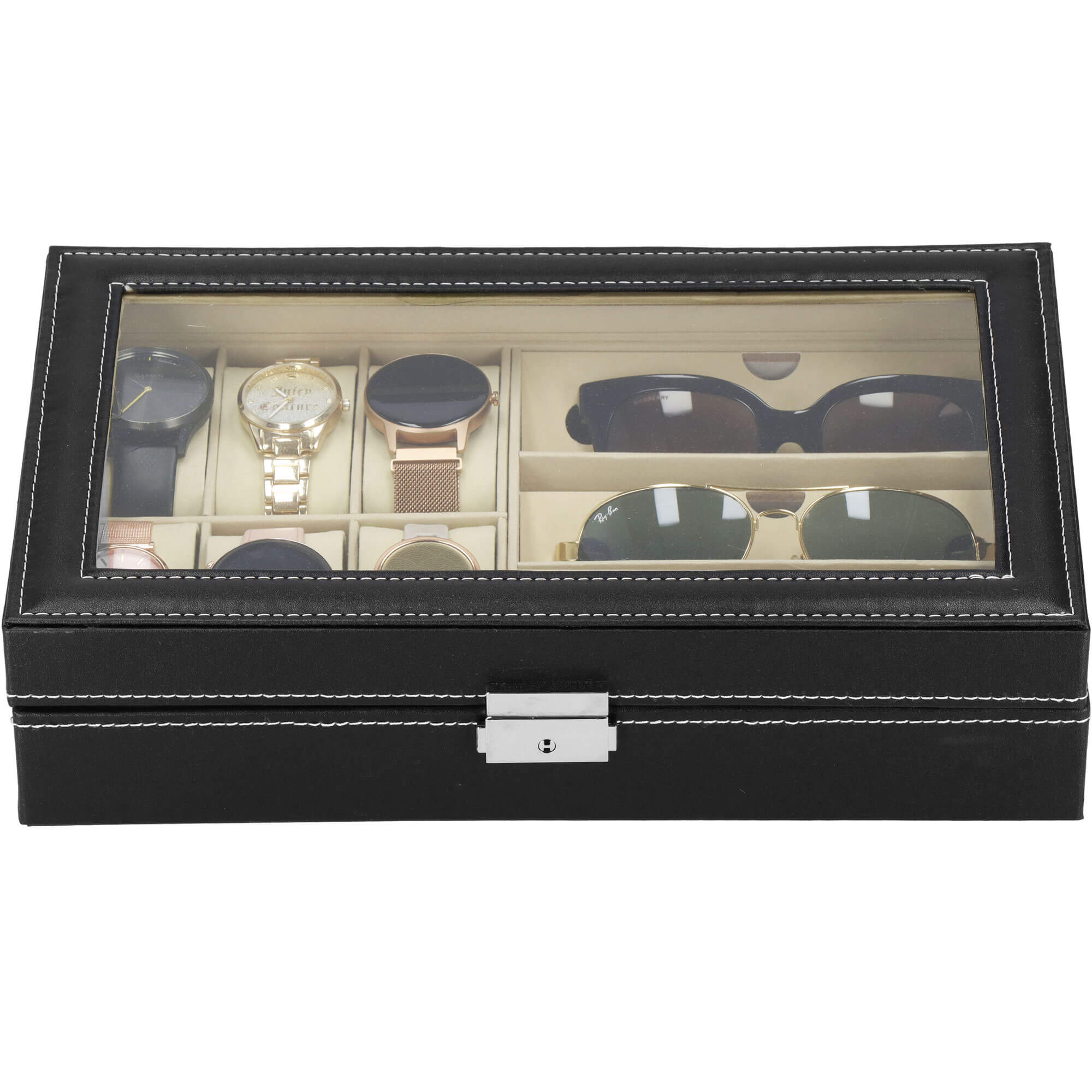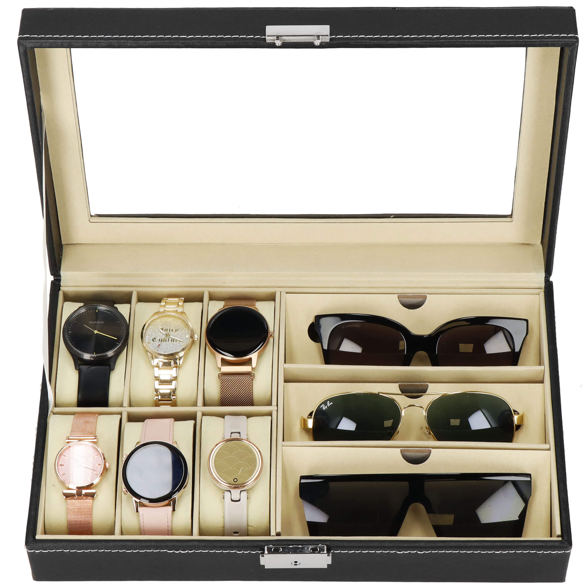Horlogedoos - Brillendoos - Horlogebox - Opbergdoos - Zwart - Creme - 6 Horloges - 3 Brillen