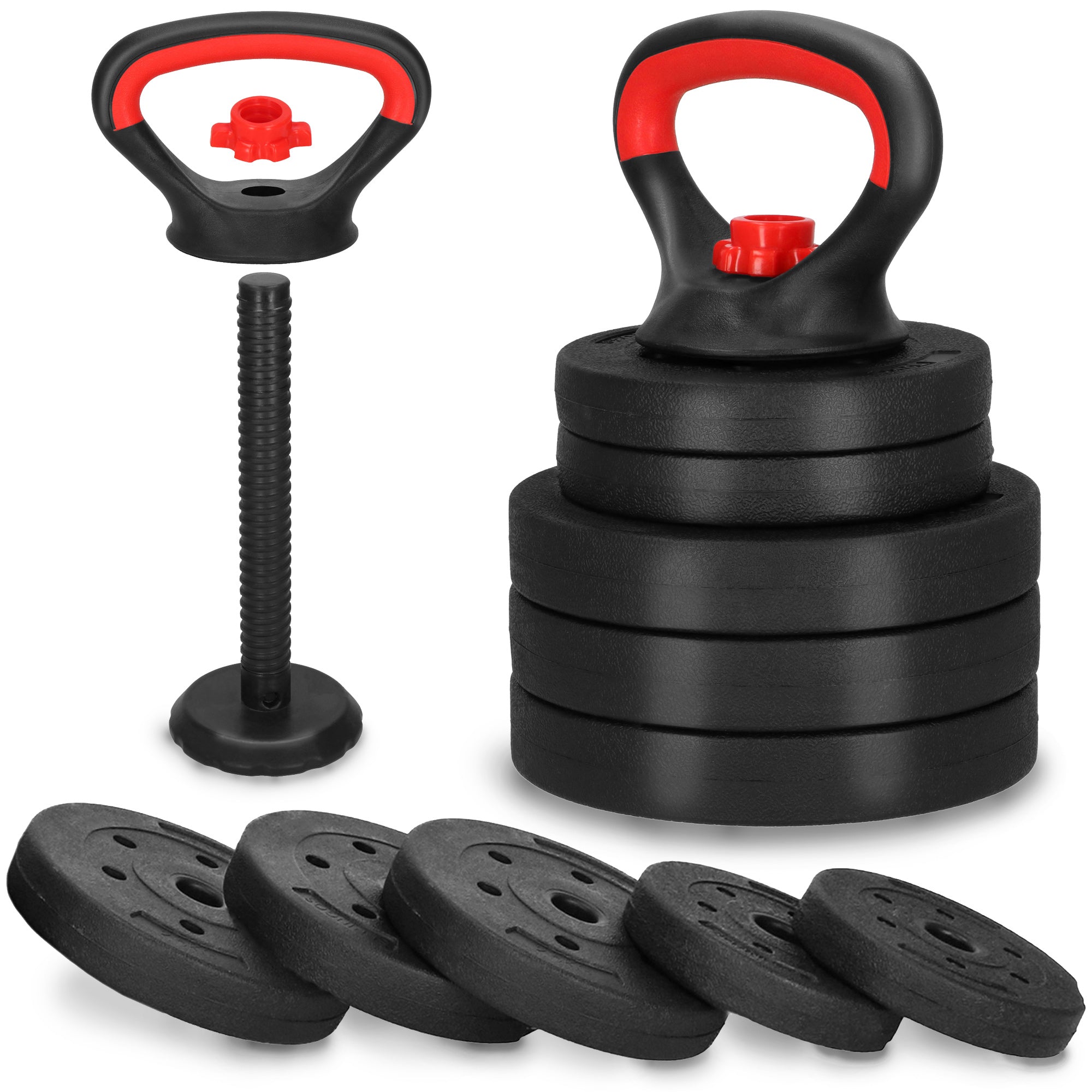 Kettlebells - Verstelbaar - 10 Kg - Set Van 5 Schijven - Zwart - Rood