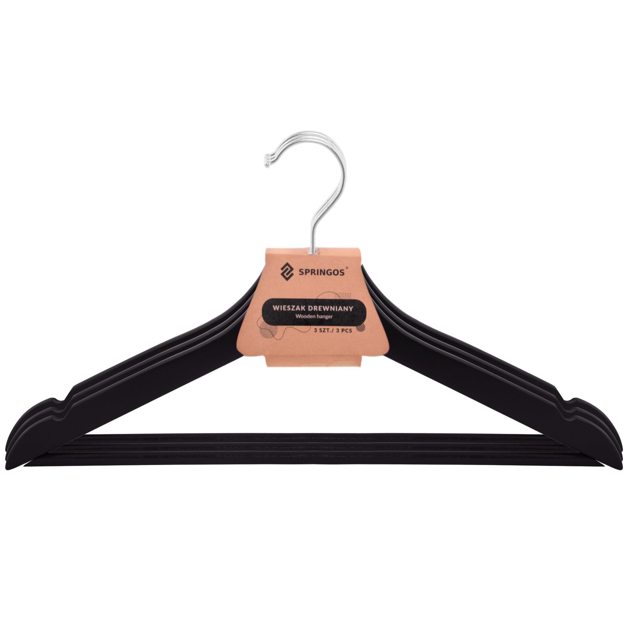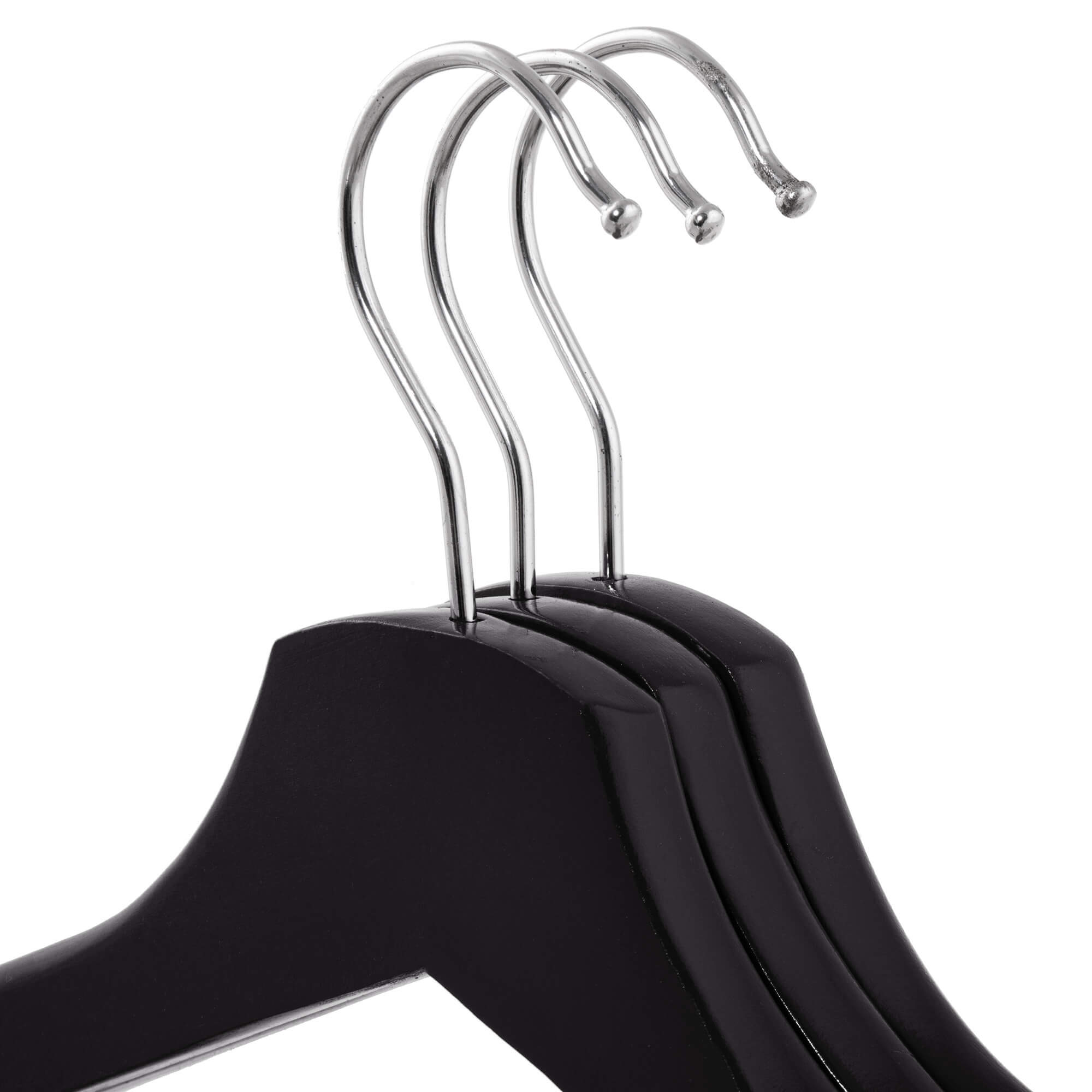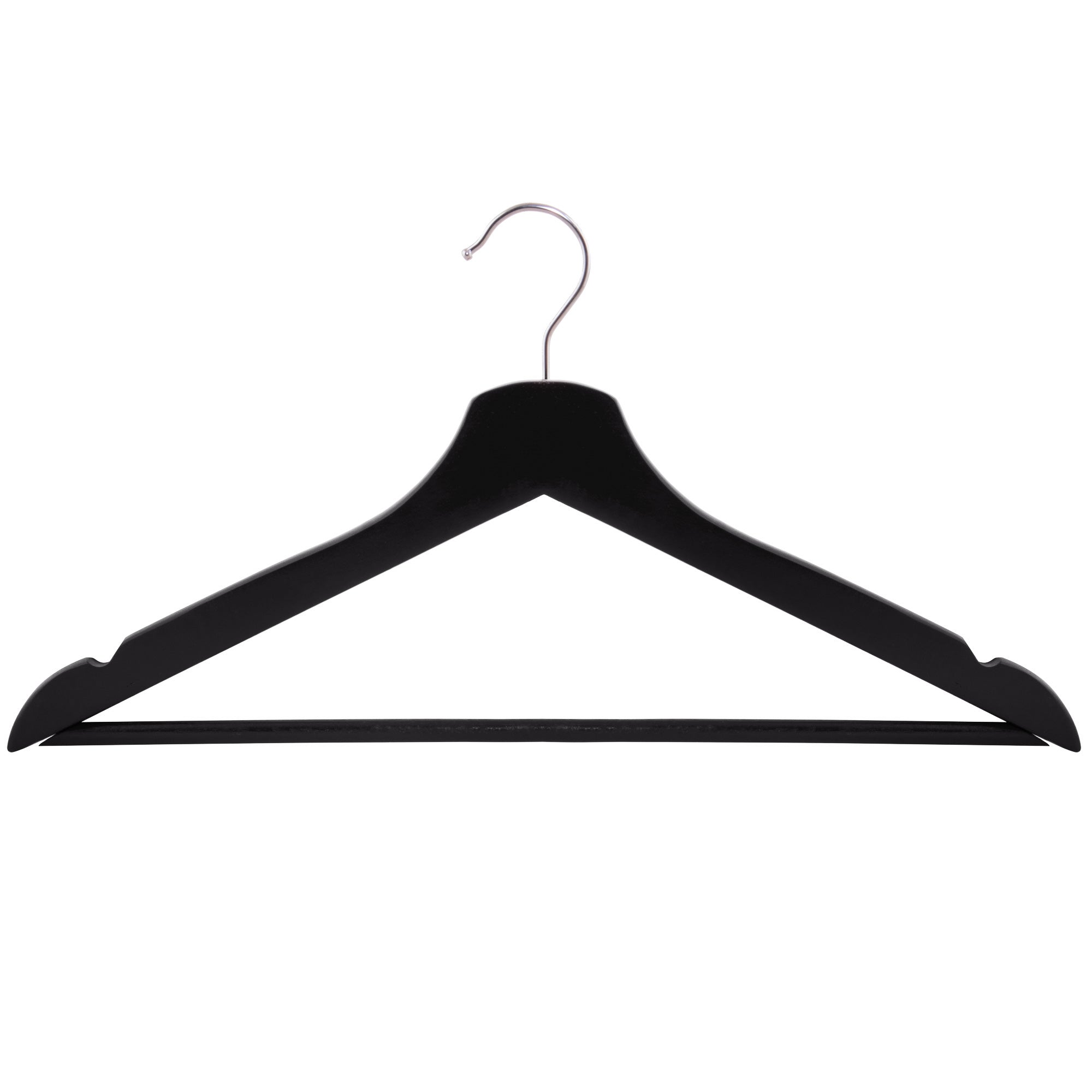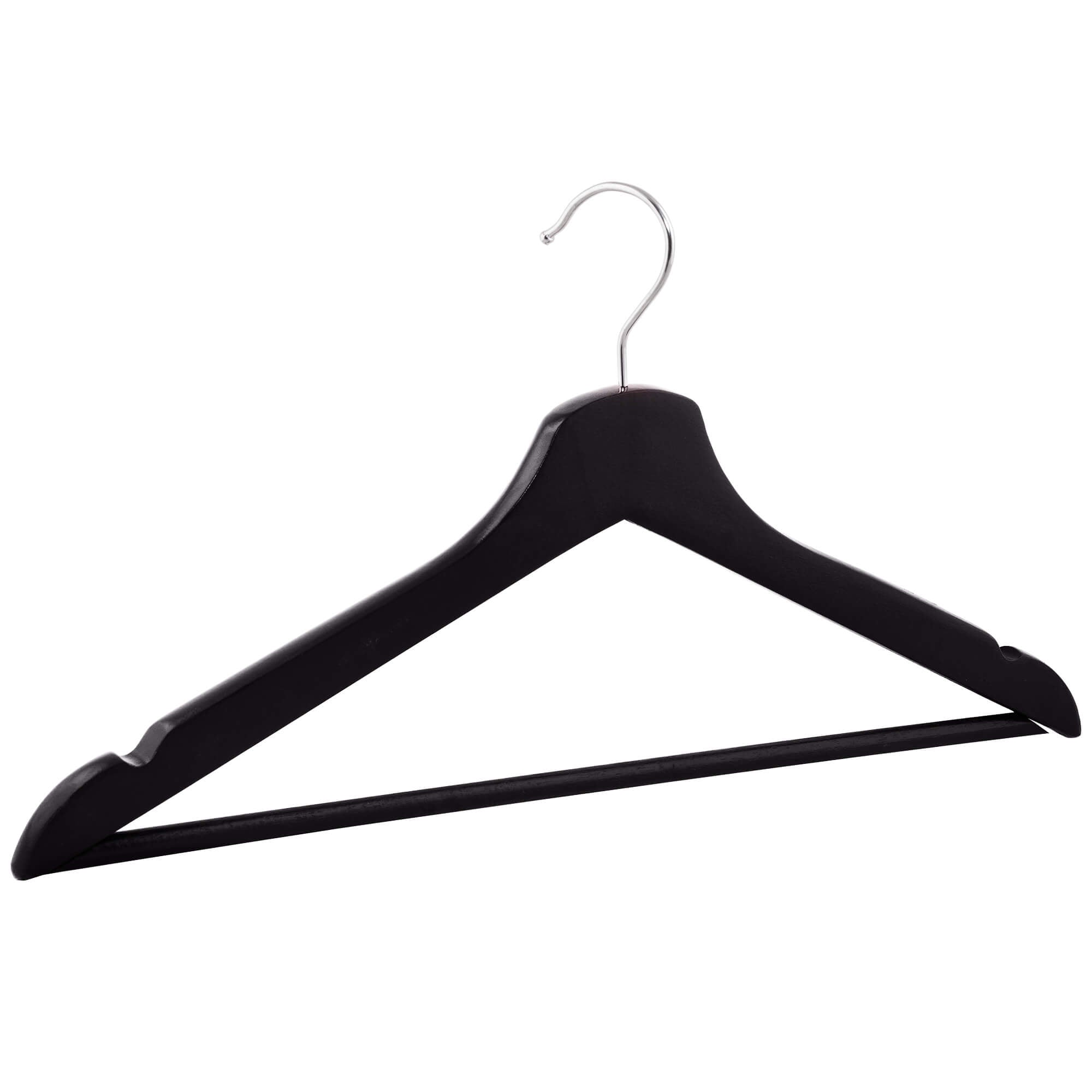 Waar stijl en functionaliteit samenkomen! Onze kledinghangers zijn vervaardigd van hoogwaardig gelakt hout, voor een duurzaam en elegant ontwerp dat jouw kleding perfect ondersteunt. De tijdloze zwarte kleur voegt een vleugje klasse toe aan elke kledingkast.