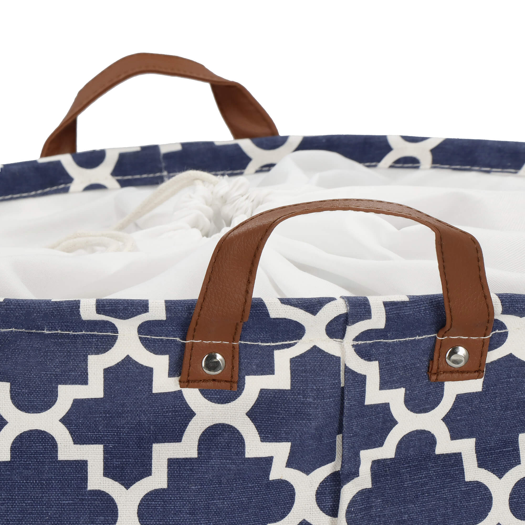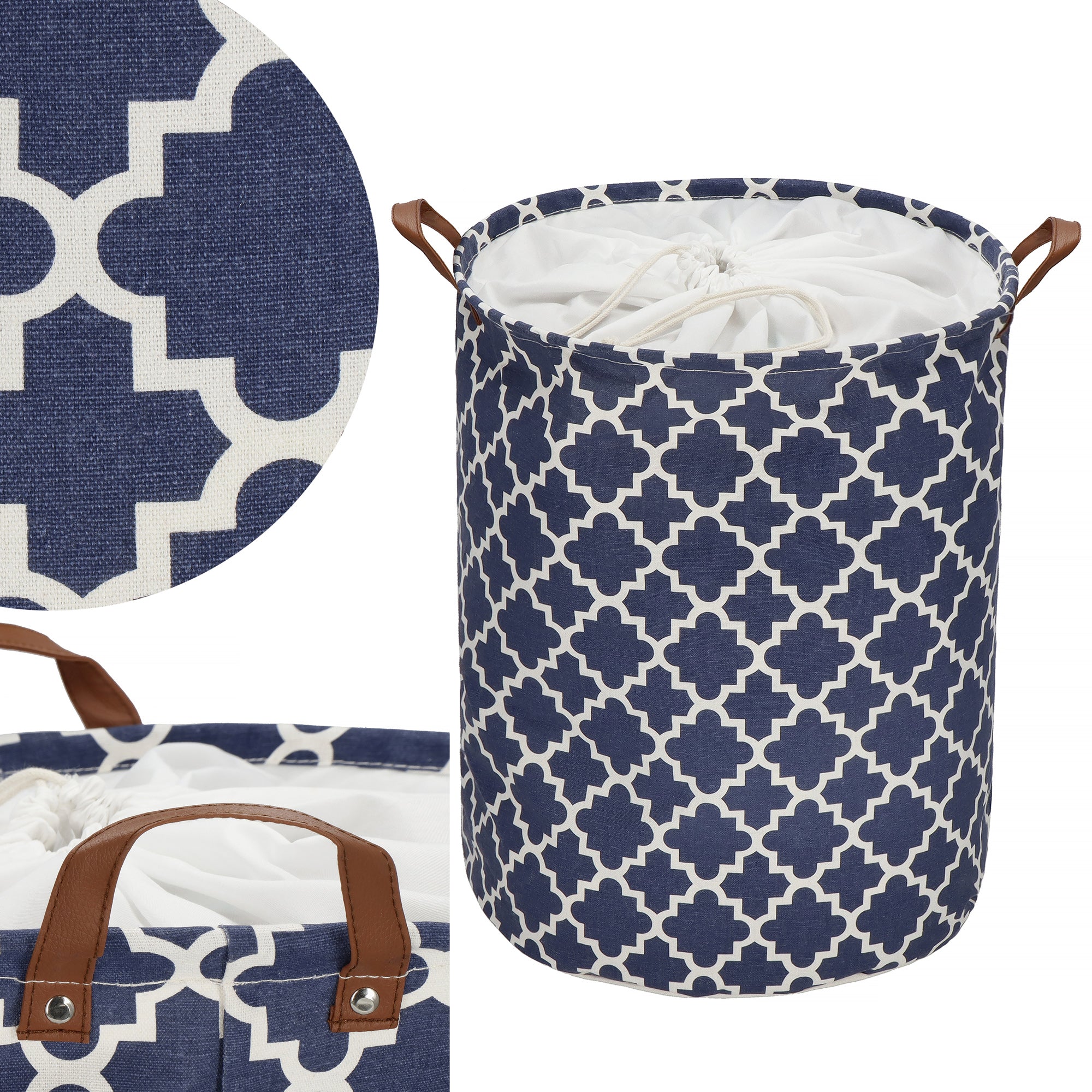 De Springos mand biedt een veelzijdige opbergoplossing voor een scala aan accessoires, waaronder kinderspeelgoed, kleding, wasgoed, handdoeken, dekens en meer. Met deze handige container creëer je moeiteloos orde in de badkamer, kinderkamer of woonkamer. Met ruimte voor blokken, tekenbenodigdheden, bordspellen en speelgoed, stimuleert het zelfs het opruimen na het spelen. De marineblauwe container met patroon voegt niet alleen een decoratief element toe aan elke ruimte, maar dankzij de handvatten is het ook gemakkelijk wasgoed te dragen en kleding te verzamelen.