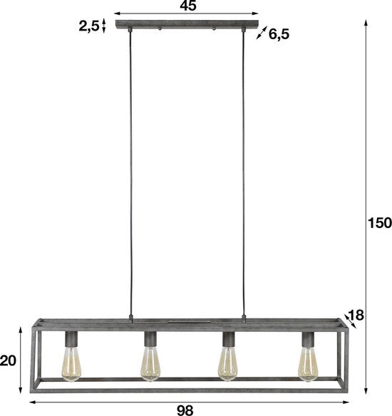 Plafond Hanglamp – 4-Lichts Industrieel 98cm Eetkamerlamp Voor Boven Tafel