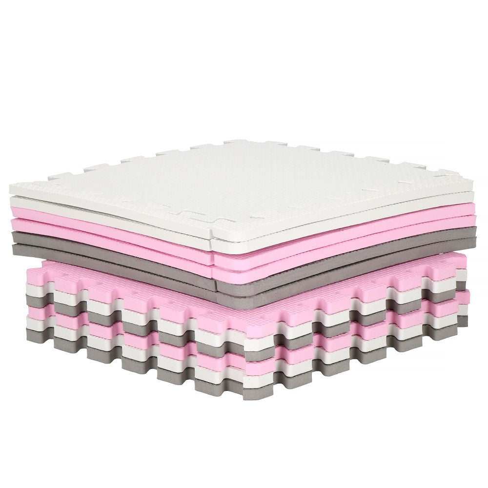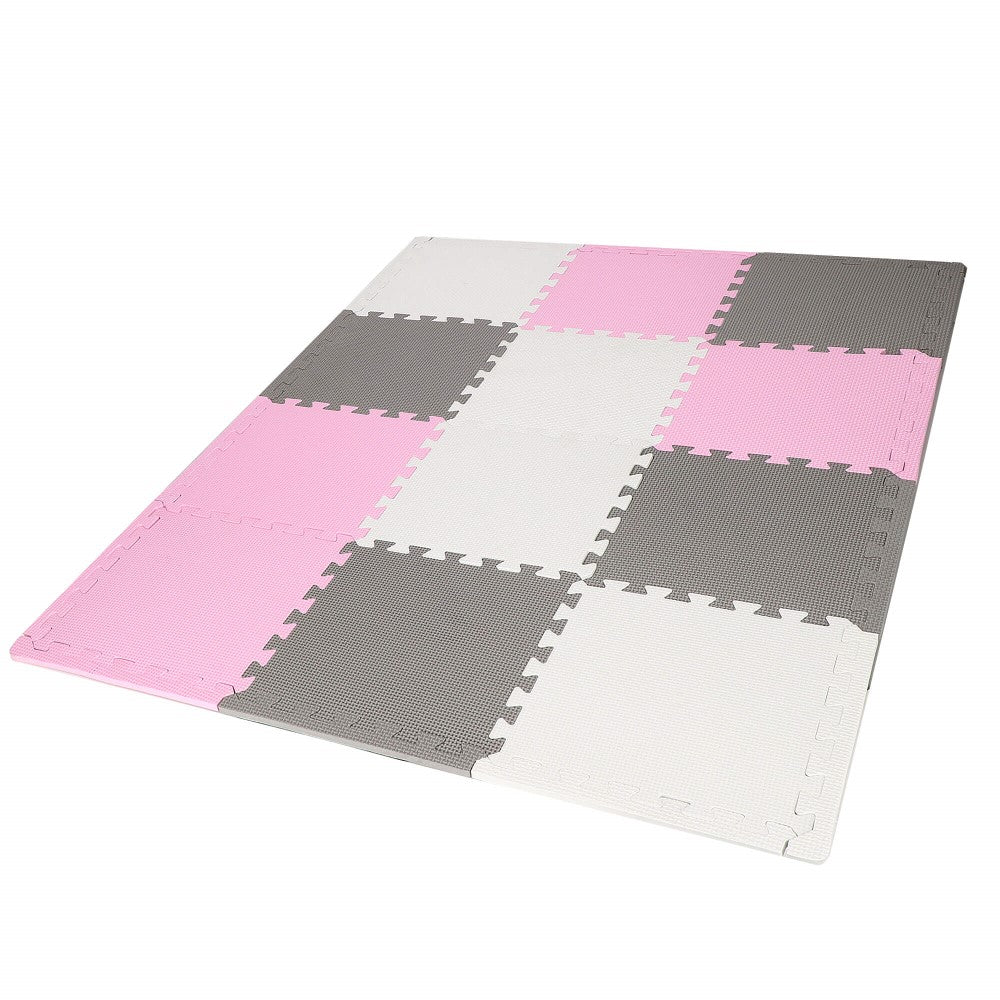 Speelmat | Speelmat Foam | Puzzelmat | 12 Puzzelstukken | 118 x 90 cm | Roze/Grijs/Wit