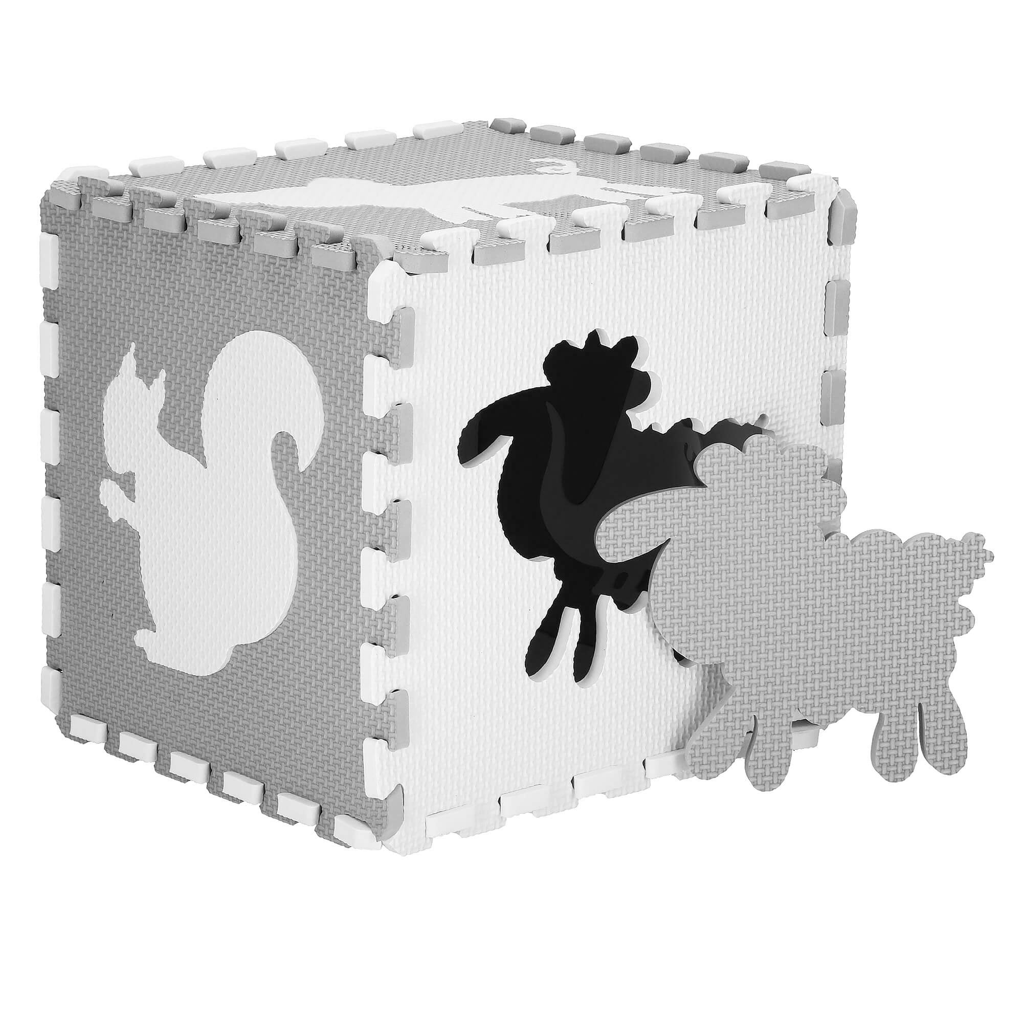 De mat bestaat uit 52 puzzelstukken, waaronder 16 met schattige dierenvormen, en kan zowel plat als in 3D worden opgebouwd. Dit maakt spelen niet alleen leuk, maar stimuleert ook de motorische vaardigheden en creativiteit van je kind. De stijlvolle combinatie van wit en grijs biedt rustgevende visuele prikkels. De mat is CE-gecertificeerd, wat garant staat voor veiligheid en kwaliteit. In opgevouwen toestand meet hij slechts 30x30x30 cm, waardoor hij compact op te bergen en gemakkelijk mee te nemen is. Geschikt voor kinderen vanaf 10 maanden, is deze mat een geweldige manier om veilig en leerzaam te spelen.